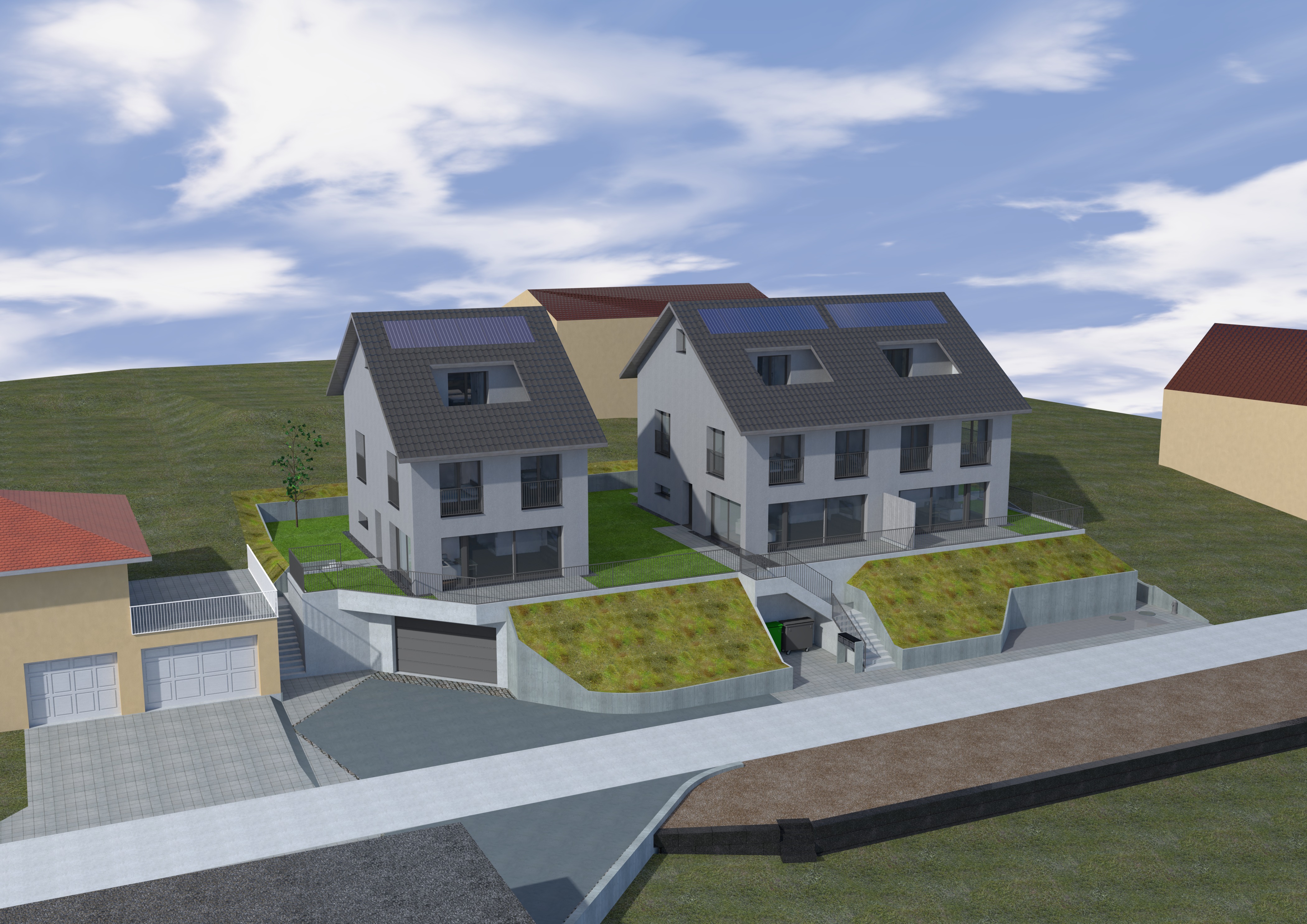 In der Gemeinde Dorf entstehen 3 Reiheneinfamilienhäuser und 8 Doppeleinfamilienhäuser.