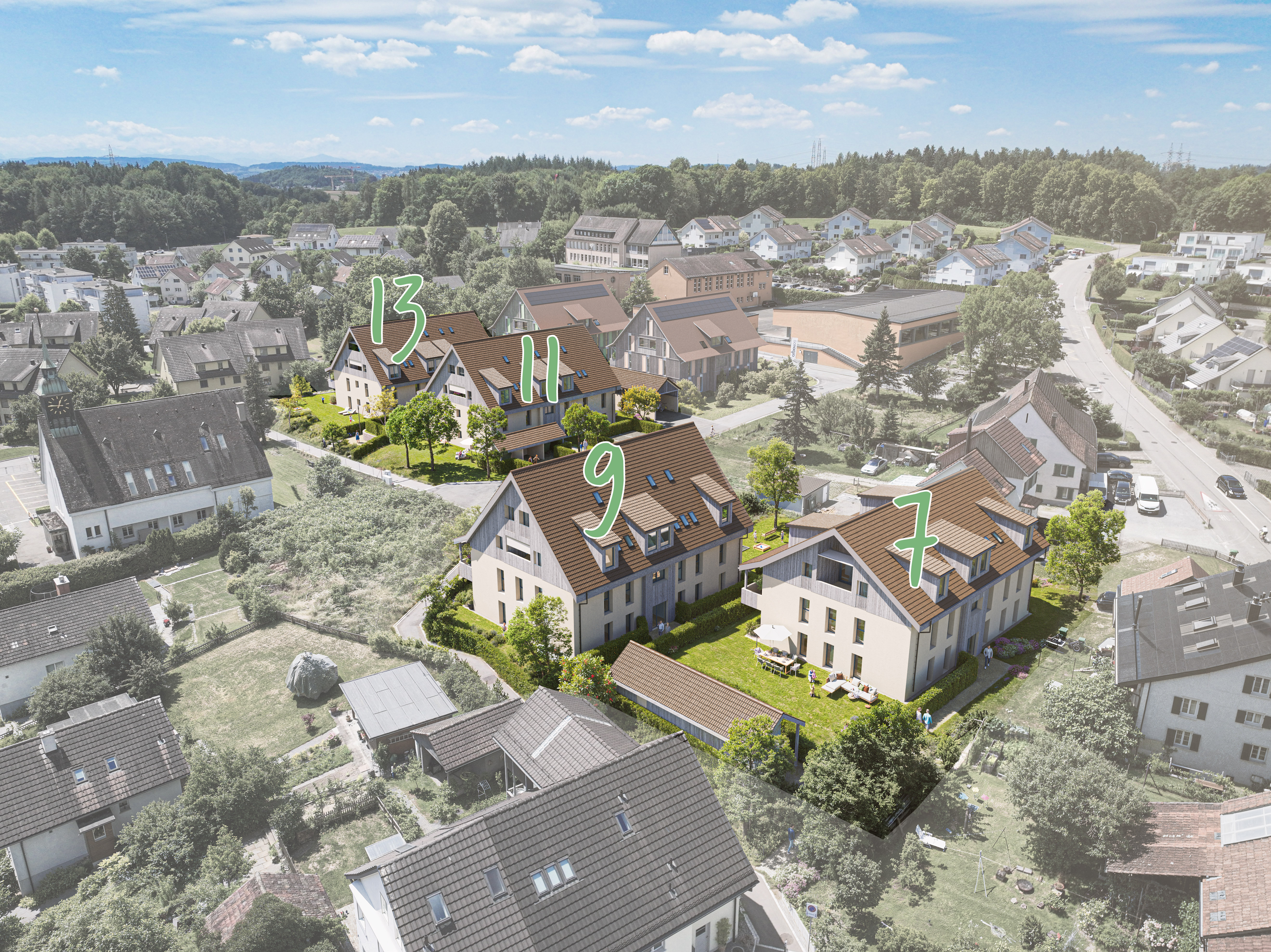 Hier entstehen 3 ½ -5 ½ Zimmer Eigentumswohnungen und 4 ½ -5 ½ Zimmer Reihen-EFH an ruhiger und grüner Lage. Zur Schule, der Forchbahn und zum Einkauf sind die Wege kurz - ebenso zum naheliegenden Greifensee.